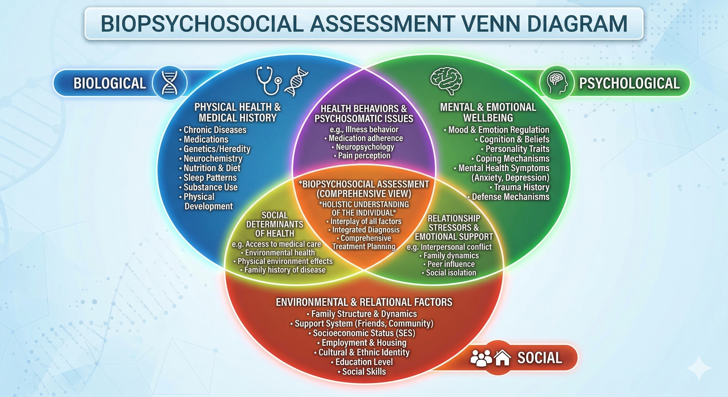 Using the true Biopsychosocial model (the spirit of the document) we look at how the symptoms have impacted all areas of their life. Are they having thyroid issues? Does this run in their family? What do their Adverse Childhood Experiences (ACEs) look like? What have they done to self-treat or medicate? Is this impacting their relationships, or are their relationships impacting them? How has their culture and ethnic background shaped their view of mental health?